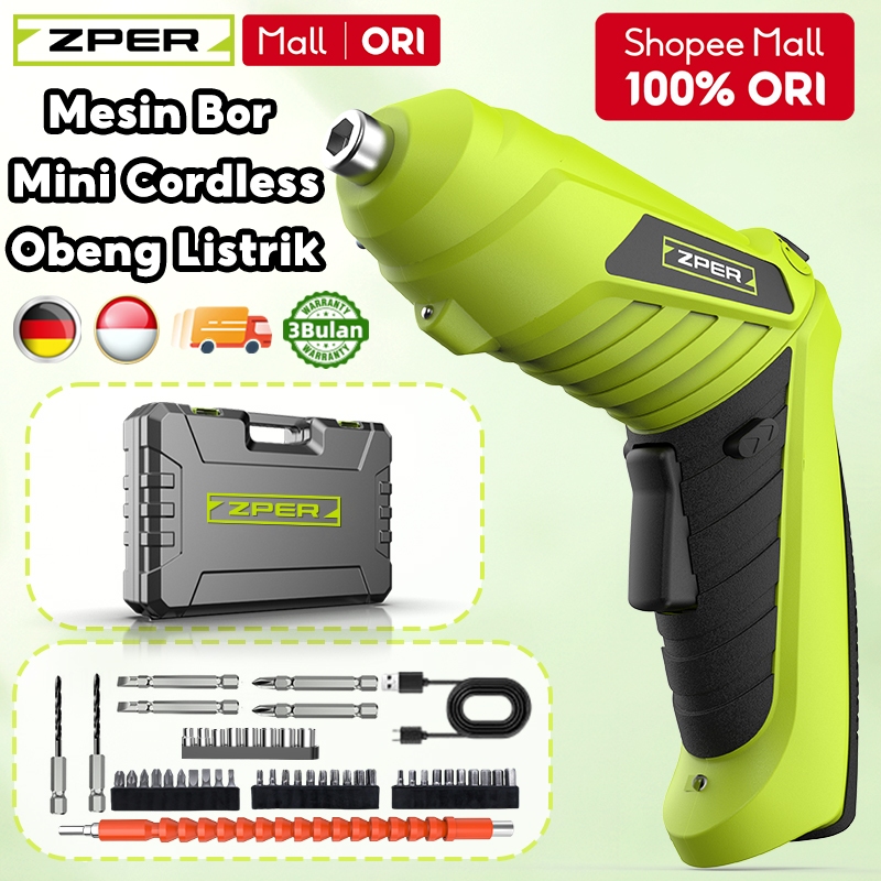 ZPER Obeng Elektrik Set Lengkap Tool Box Mesin Bor Mini Listrik Perkakas Toolkit Komplit 4.2V Screwdriver Cordless Baterai ZP016