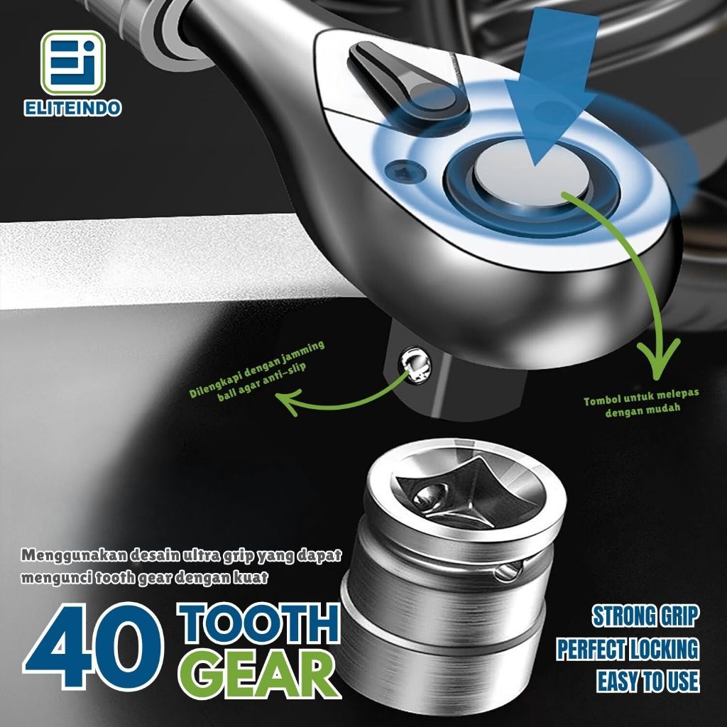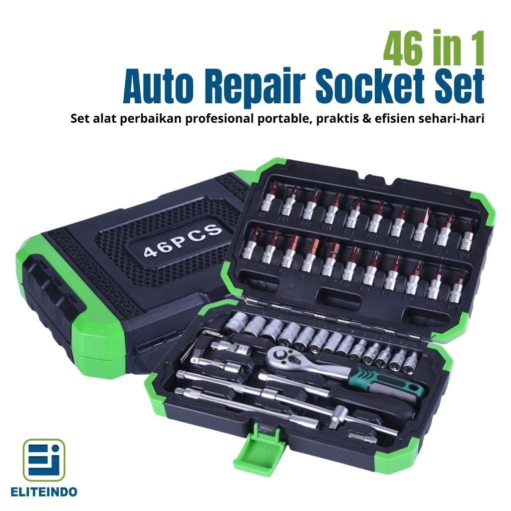 ELITEINDO Kunci Socket Set 46pcs in1 Full Sok Lengkap Tools Wrench Alat Perbaikan Berkualitas - G6A2