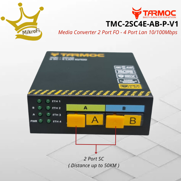 Tarmoc TMC-2SC4E-AB-P-V1 |Media Converter 2 FO 4 LAN / 2FO 4LAN 10/100 POE IN(9-57V)