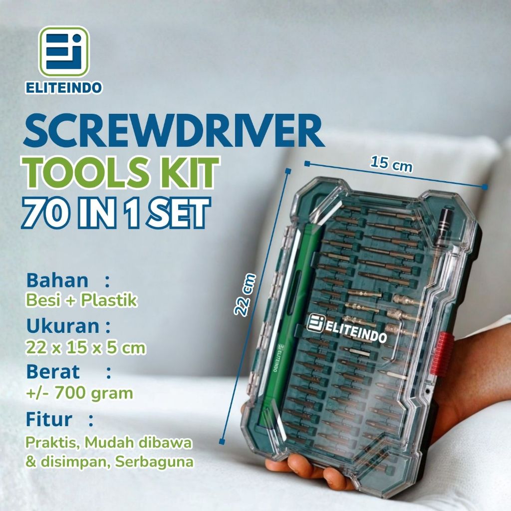 ELITE Obeng Tools Kit Set Box 70 IN1 Mata Magnetik Lampu LED Lengkap Alat Perkakas Kecil HP HYQ169