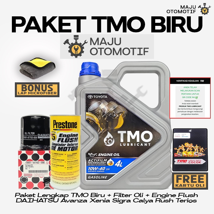 Ganti Oli Mesin TMO BIRU SAE 10W-40 4 Liter Engine Flush DAIHATSU Avanza Xenia Sigra Calya Rush Ayla Agya Terios Granmax Luxio 10W40 4Liter