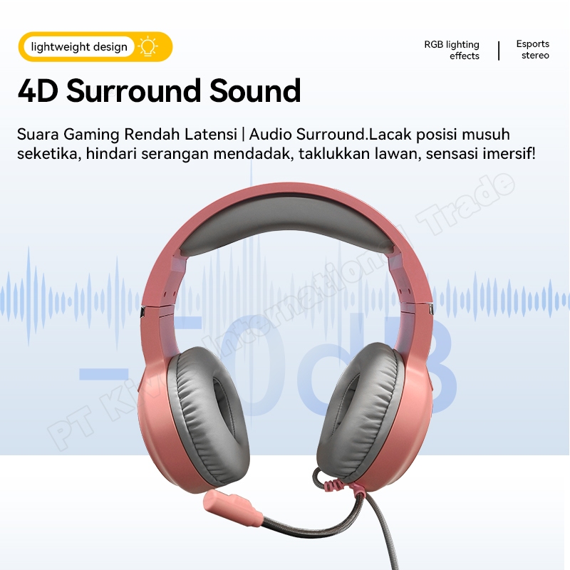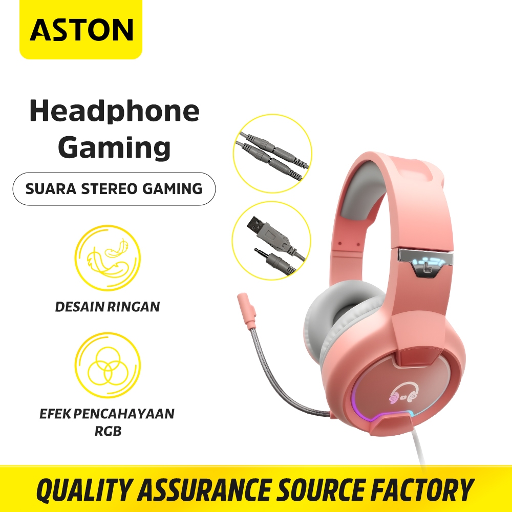 ASTON Headphone Gaming RGB AT-MT140 Pink Cute With Noise Cancelling Full Bass 9D HIFI IP67 Original