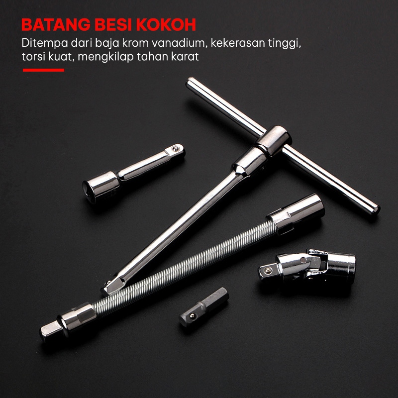 Kunci Socket Set Wrench 46Pcs Obeng Shock Tool Box Kit Baja (CR-V) Car Repair / Kunci Ring Pas Ratchet Mobil Motor Mesin Busi Lengkap - G2C1