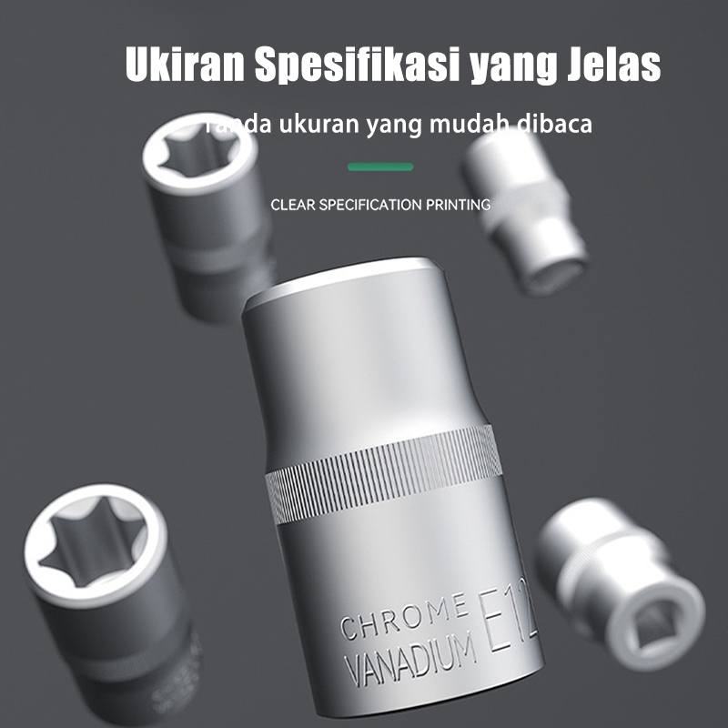 34PCS Socket Set E-Type - Kunci Soket Hex / Spline untuk Bengkel Mobil, Perkakas Servis Profesional