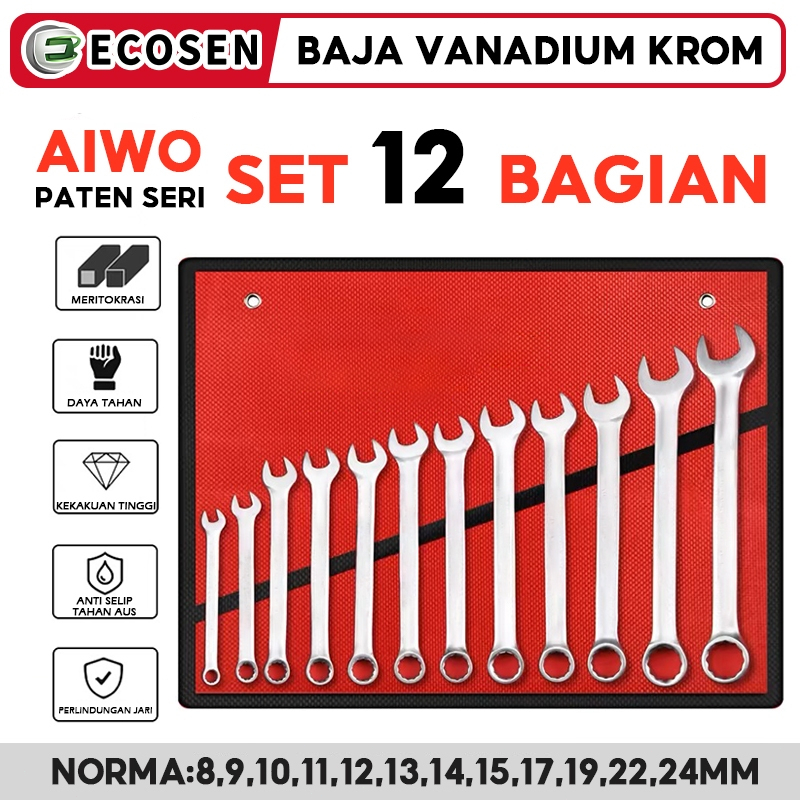 DICKS Steel High Hardness Kunci Ring Pas 8-24mm 14 Pcs Spanner Set Full Set Kunci Ring Pas Perkakas
