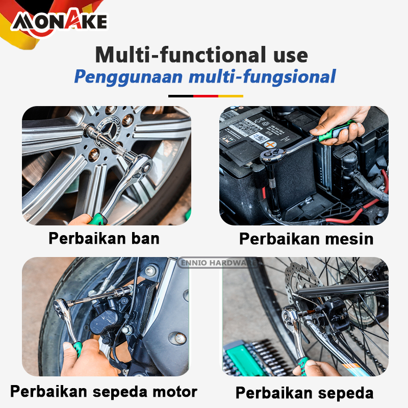 MONAKE Alat Jerman Kunci Sok Set 12/32/37/46/53/61/82/94 pcs Set Lengkap Kunci Mata Sok 1/2'' and 1/4'' inch Set Potong Kunci Pas Alat Set