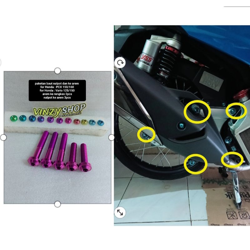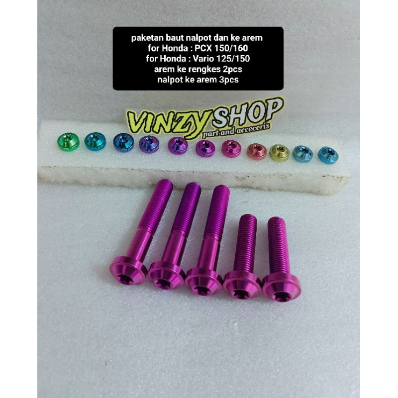 baut titanium gr5 kenalpot ke arem + baut arem ke rengkes Honda PCX dan Vario isi 5pcs