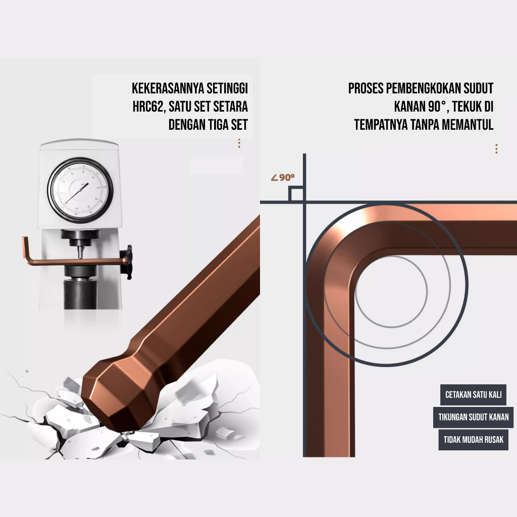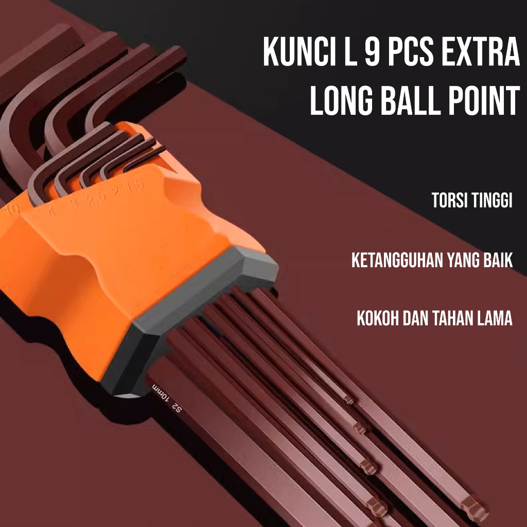 CUTA Kunci L Set 9 Pcs S2 Rata Ball Point Torx Bintang Hex Key Kunci L Set Lengkap Panjang Long