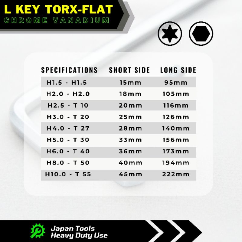 VELOZ Kunci L Set Torx Flat 9pcs (Panjang) / Kunci L Set TORX - FLAT EXTRA LONG / TOOLS - Alat Perkakas
