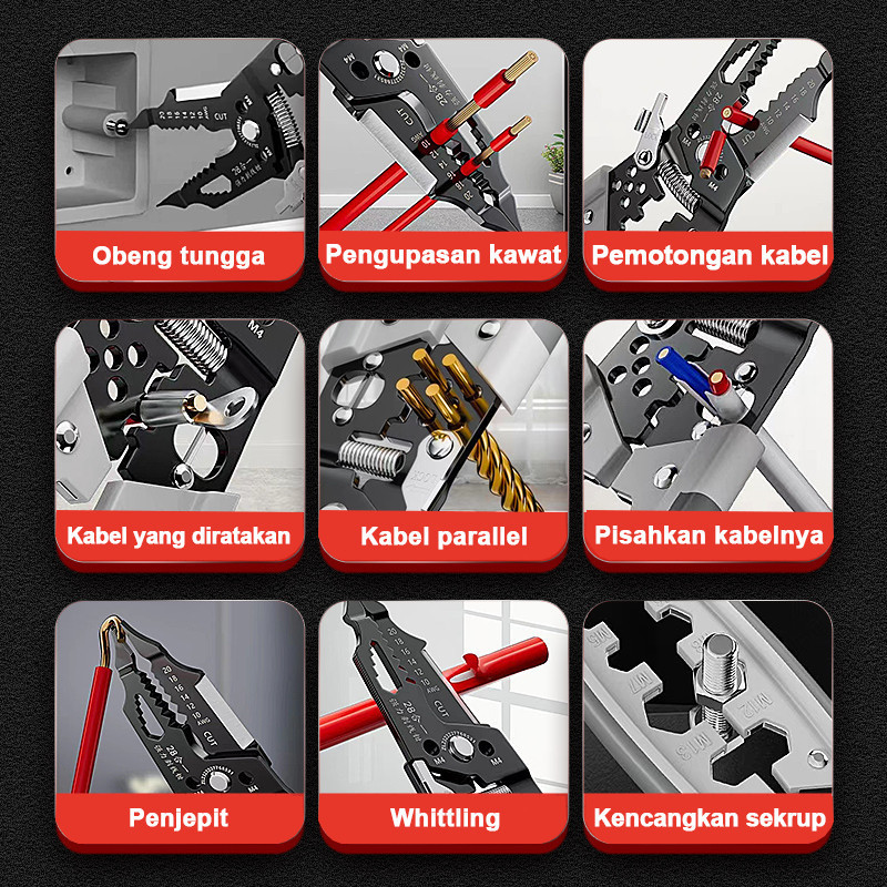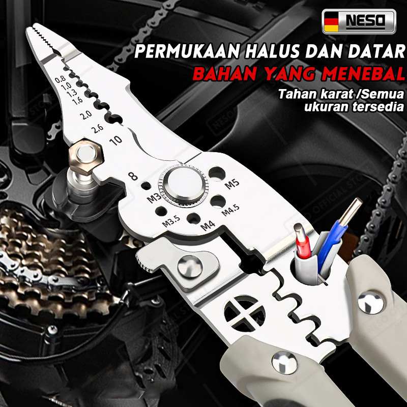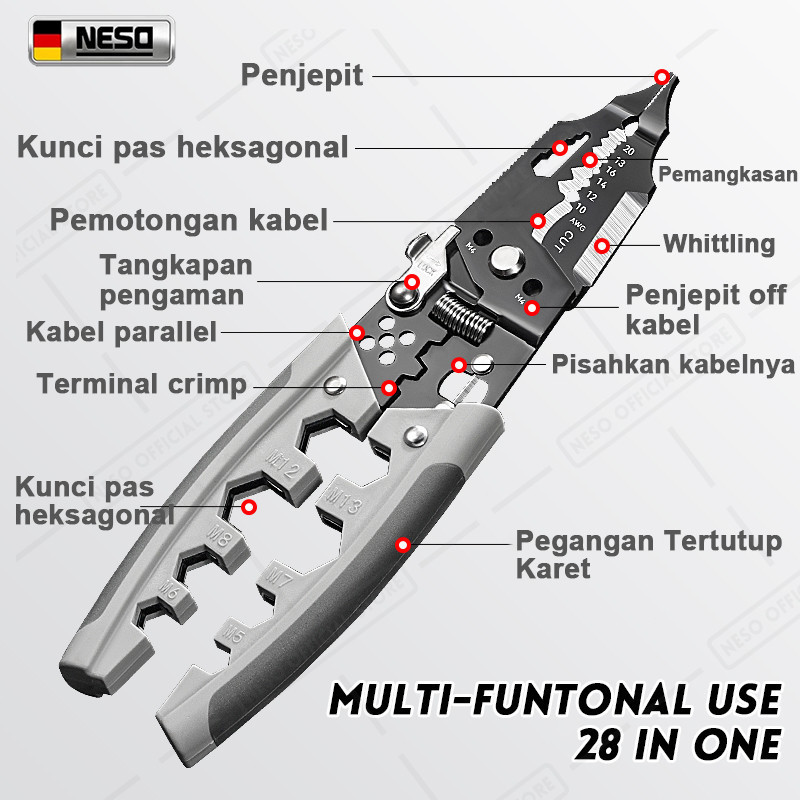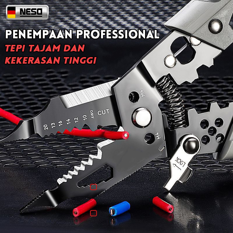 JERMAN NESO Top Pengupas Kawat 24in1 Tang 7-9inch Kupa Kabel Wire Stripper Dekrustasi Multi Alat Tang Alat Perbaikan Kawat Multifungsi
