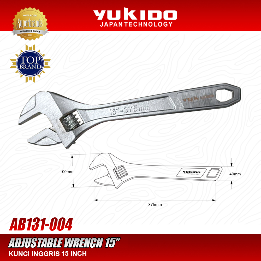 YUKIDO Kunci Inggris 15 Inch Heavy Duty Chrome Vanadium Adjustable Wrench 15" Pembuka Baut Besar Kunci Pas AB131-004