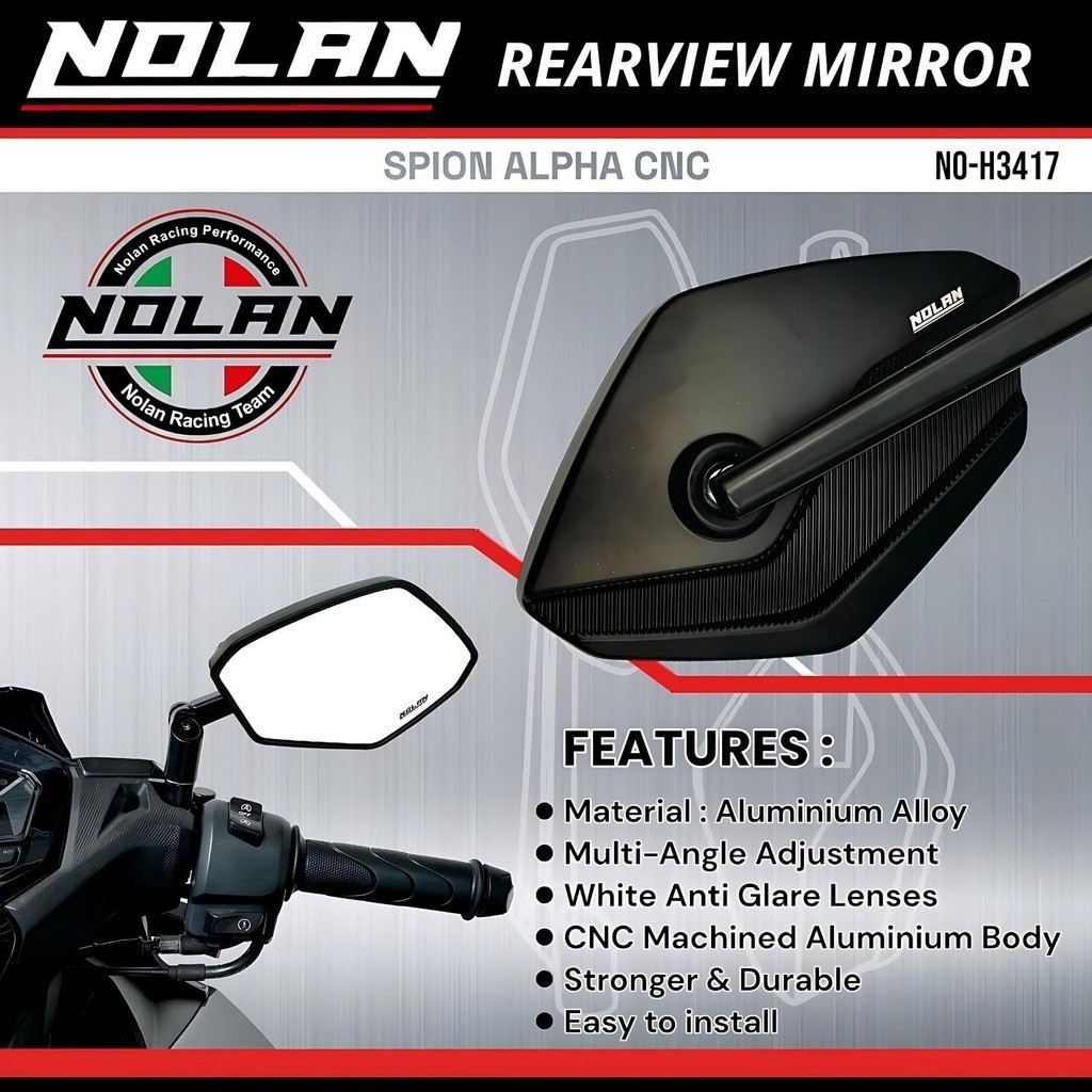 Spion NOLAN ALPHA BLACK FULL Aluminium CNC Universal