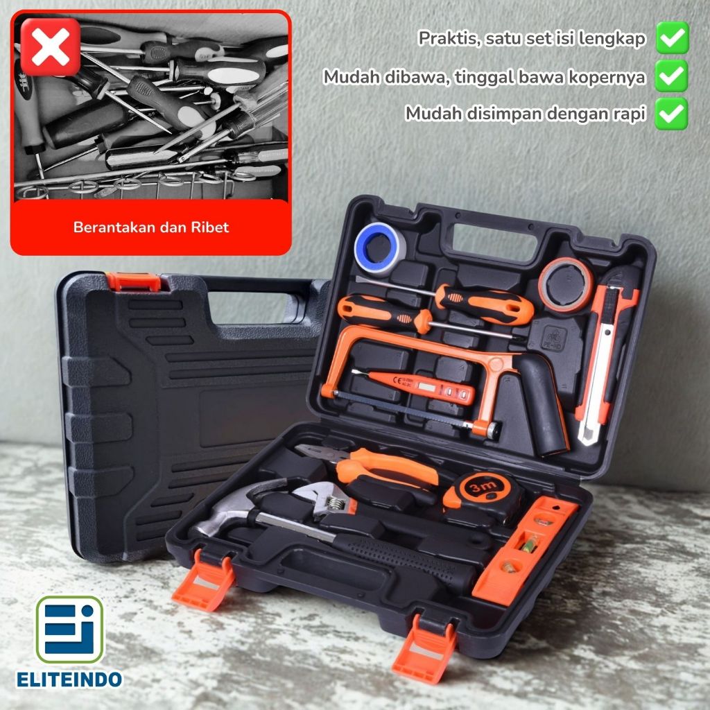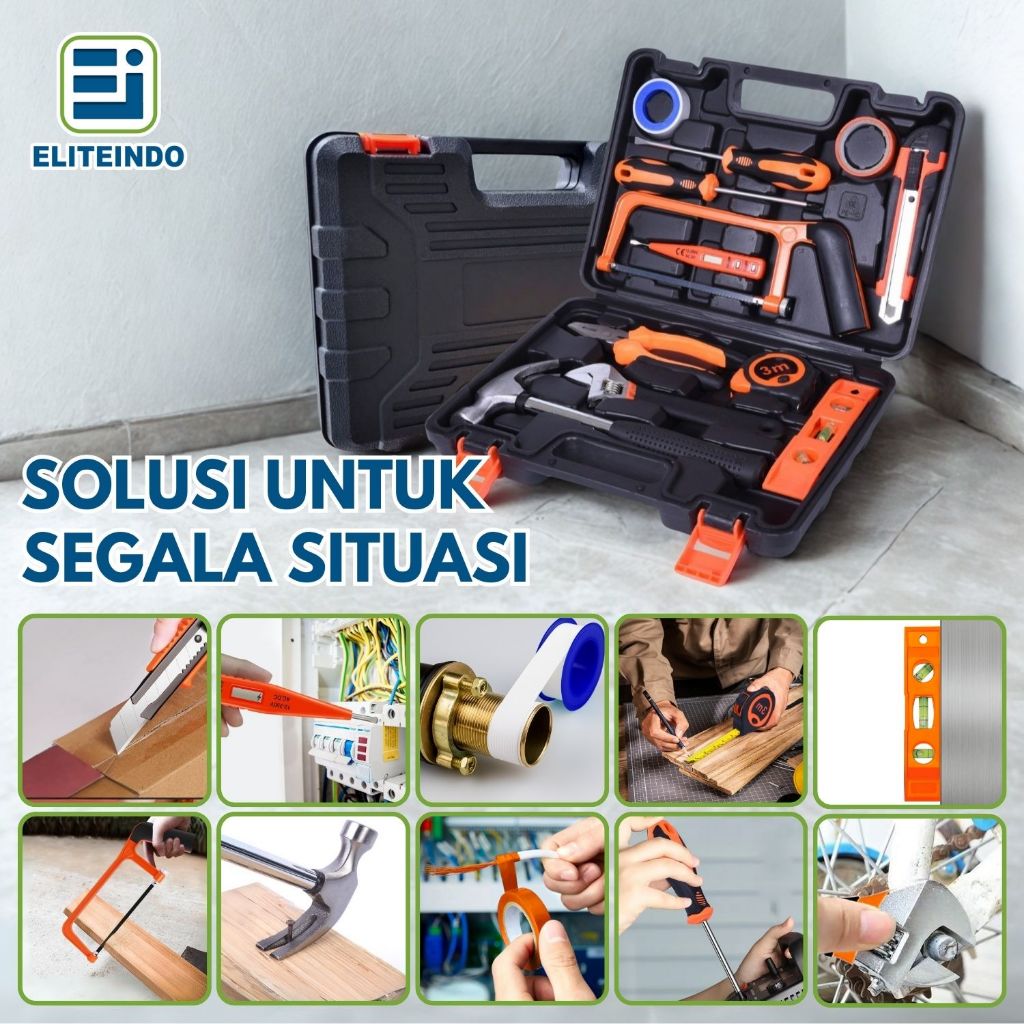 ELITE Hand Toolset Tool Kit Set Alat Tukang Perkakas Box 13 in 1 Kunci Pas Obeng Palu Lengkap - G6A4