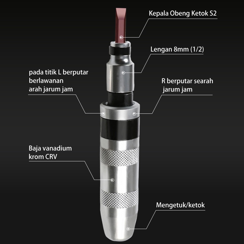 ISKU Obeng ketok set 13pcs Obeng Set Putar set S2 Drill bit bahan non-karat Impact screwdriver set Box besi Obeng Ketok