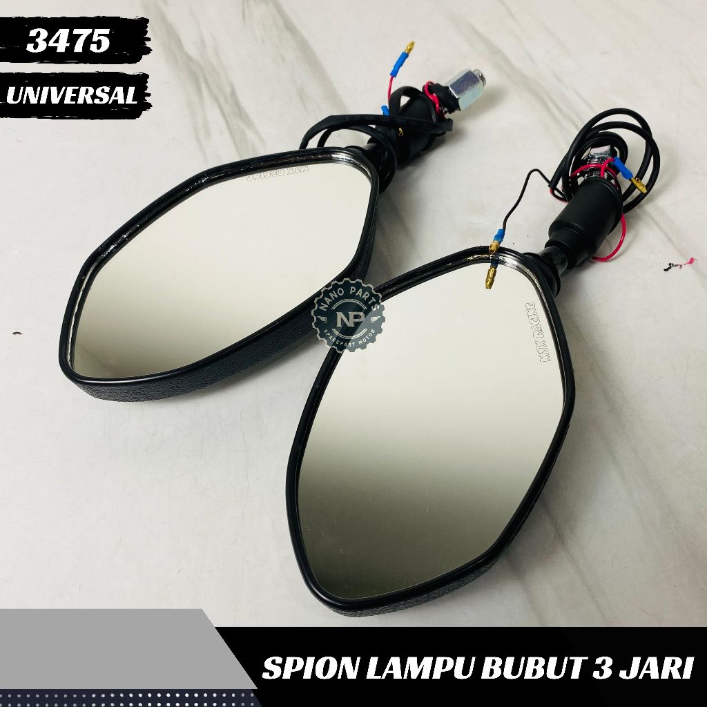Spion Lampu Bubut 3 Jari Tangkai Pendek Sen Running Sein Chrome Silver Model Beat Bisa H Y Universal
