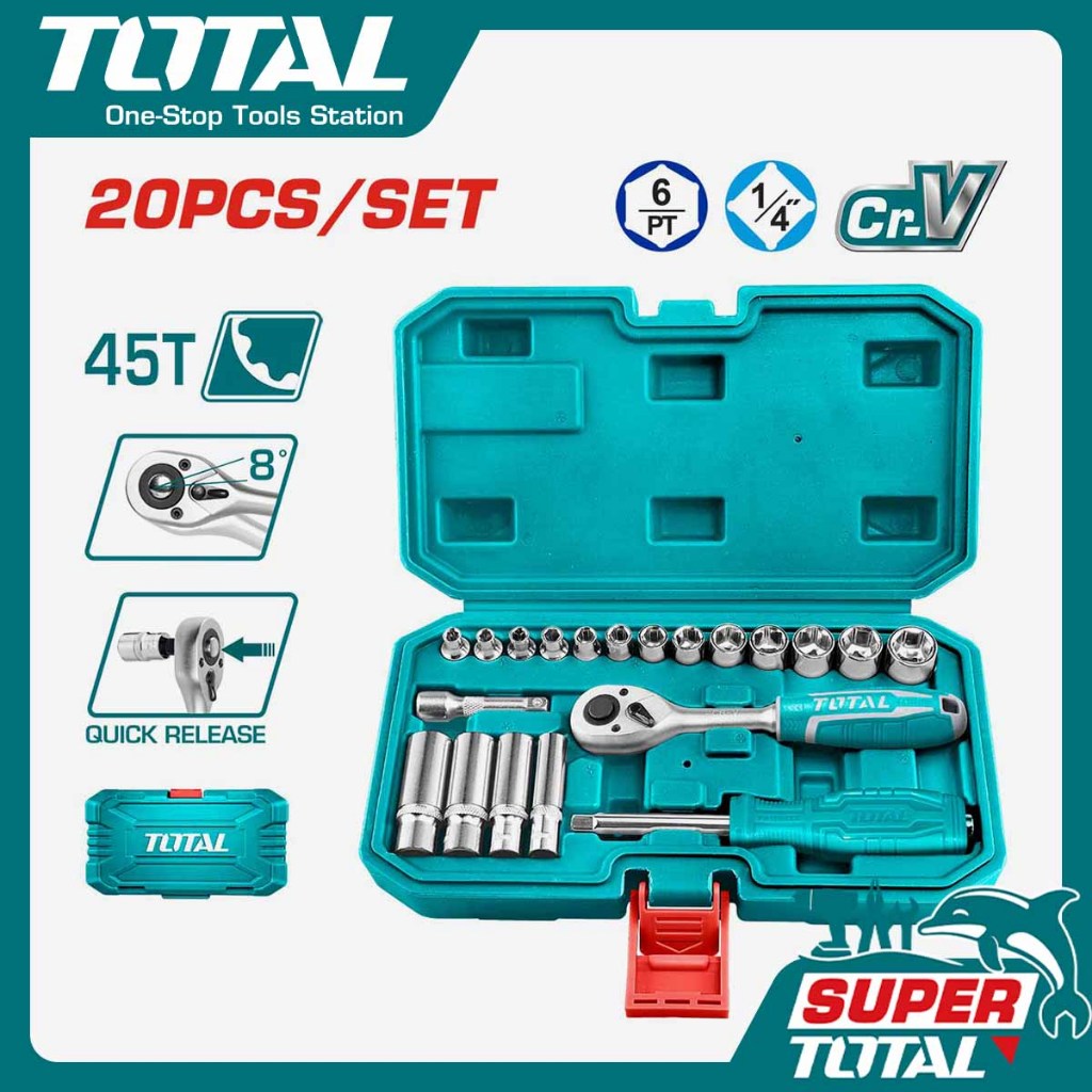 TOTAL 20 Pcs 1/4" Socket Set THT141201