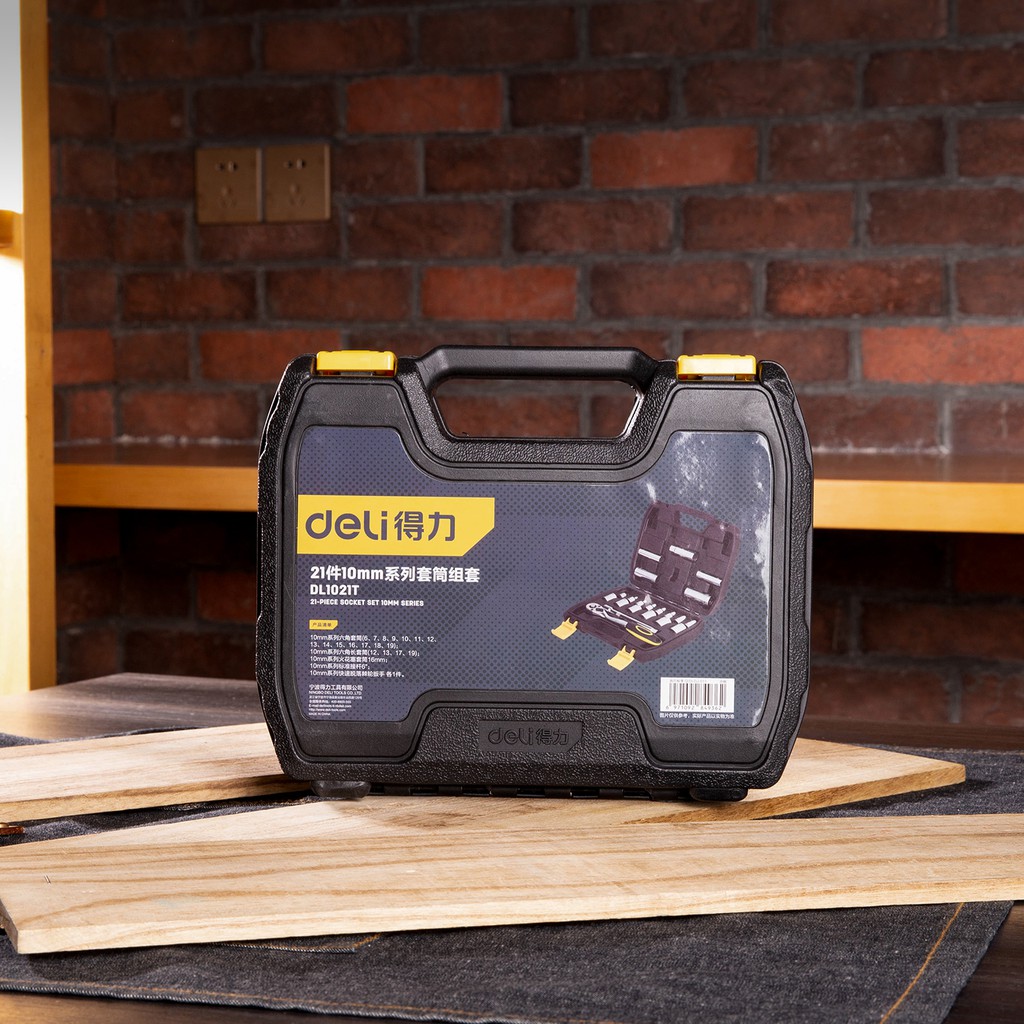 Deli Socket Sets /Set Kunci Sok 21 Pcs Chrome vanadium 50BV30 Otomotif DL1021T /Alat Perkakas