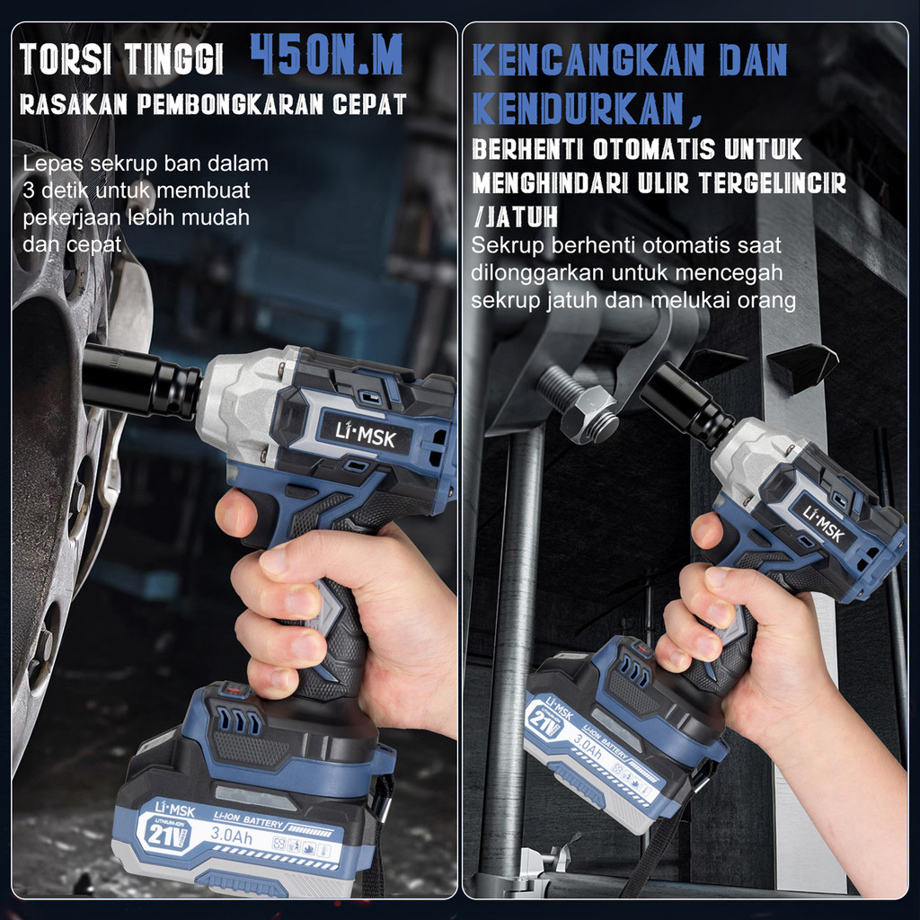 LIMSK Cordless Impact Wrench Brushless Impact Baterai Wrench 21V LI-1020
