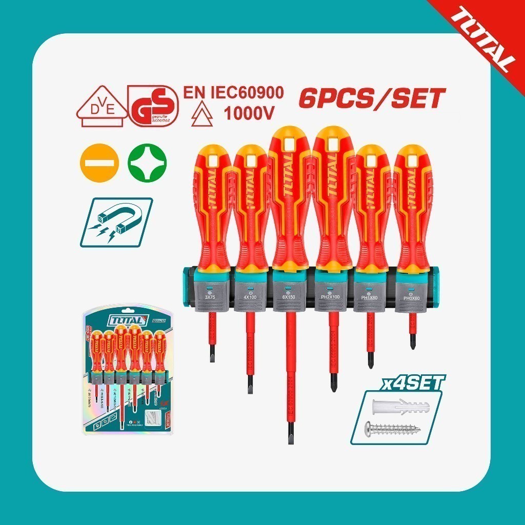 TOTAL 6 Buah Set Obeng Berinsulasi / 6 Pcs Insulated Screwdriver Set THTIS566