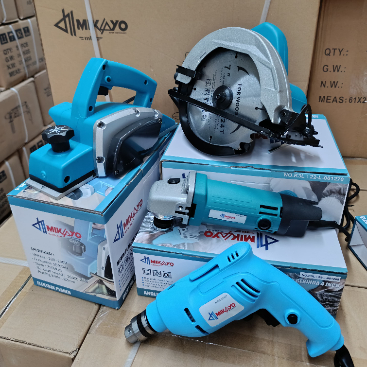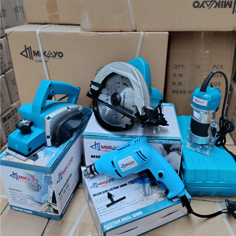 paket tukang MIKAYO lengkap Mesin Profil KAYU + Mesin Serut kayu + Mesin Circular Saw + Mesin BOR 10MM + mesin jigsaw + mesin gerinda 4 inch ORIGINAL