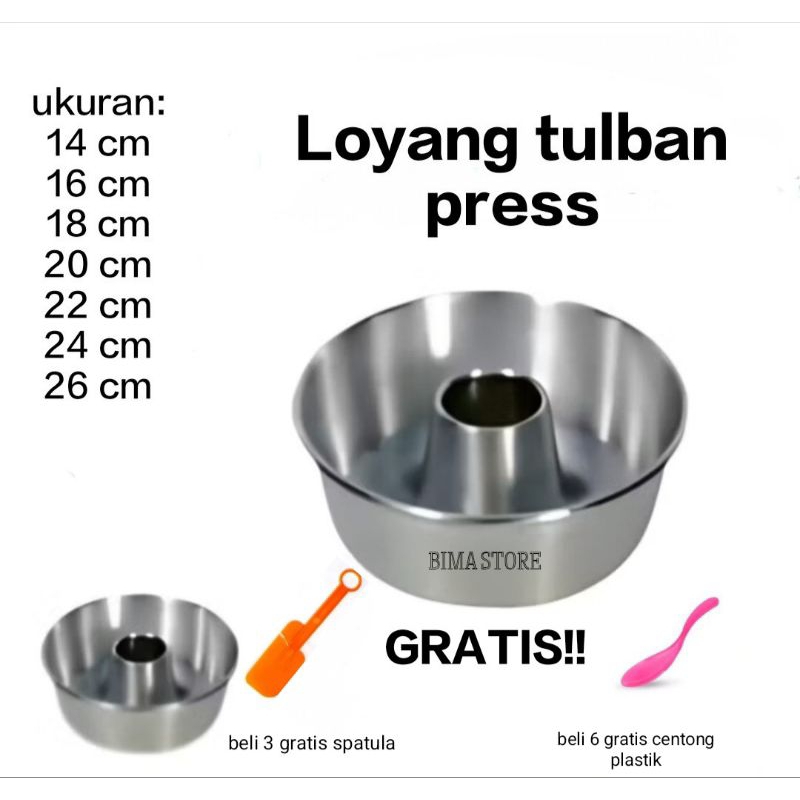 Loyang Tulban press loyang bima tanpa sambungan 14 16 18 20 22 24 26 cm pembelian 3pcs gratis spatula / pembelian 6pcs c