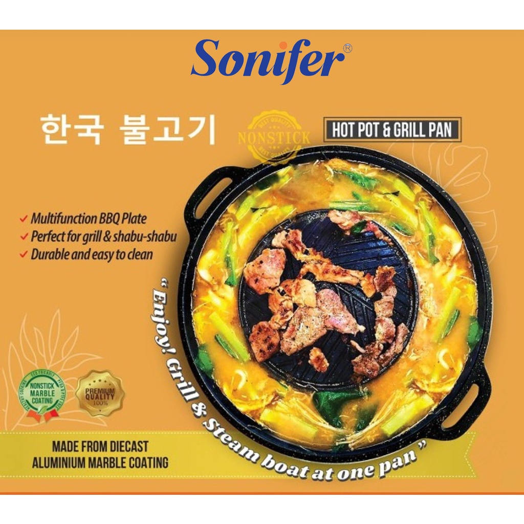 Sonifer Steamboat Hotpot Sukiyaki Shabu Bulgogi Grill Pan Premium 2 in 1