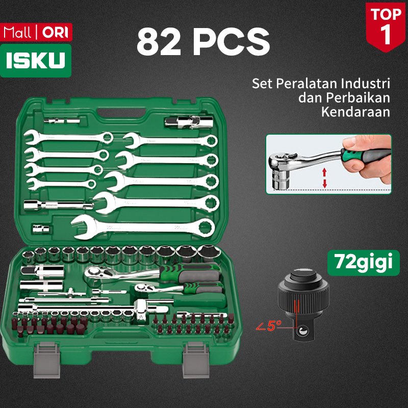 ISKU Tool kit Set alat Kunci Sok set 82pcs/kunci pas Set 12pcs 8-19mm 1/2 kunci Mata Sok lengkap 19pcs Kombinasi 1/2 72gigi Gagang ratchet