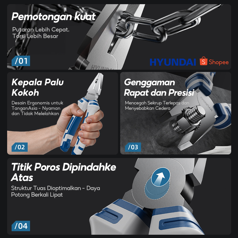 HYUNDAI Tang Kombinasi 6" 8" Kualitas Profesional Tang Kawat Multifungsi Penguras Tenaga