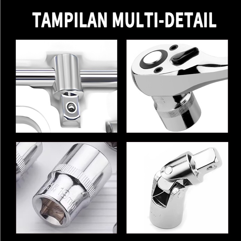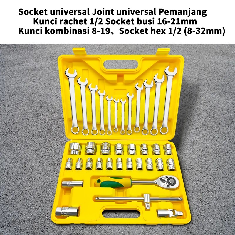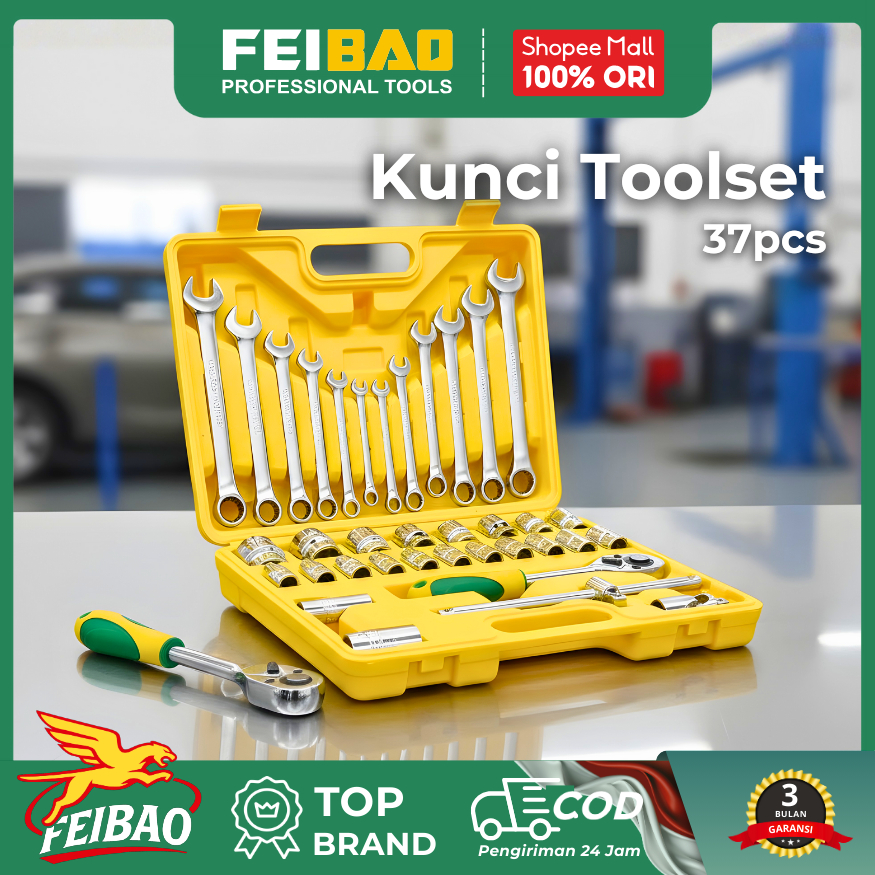 FEIBAO Alat Kunci Sok Set 37pcs Kunci Pas 12pcs Ukuran 8-19mm Rachet 72 Gigi Socket 8-32mm Premium