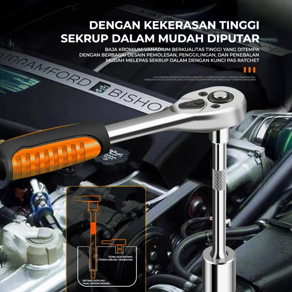 CUTA Kunci Sok Set 53 Pcs Tool Kit Set Motor Lengkap Kunci Shock Set 1/4 Inch Socket Set Mata Sock