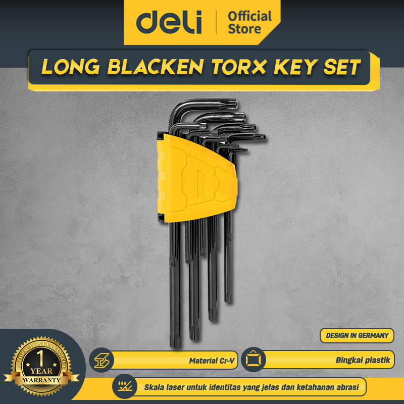 Deli 9pcs Long Torx Hex Key Set with Black FinishSet /Kunci L Set Ujung BintangT10-T50 Perkakas EDL234209H