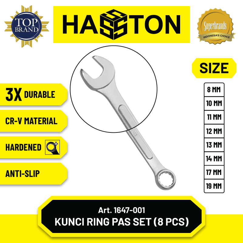 Hasston Kunci Ring Pass 8 pcs / Combination Wrench (8-19mm) (1647-001)