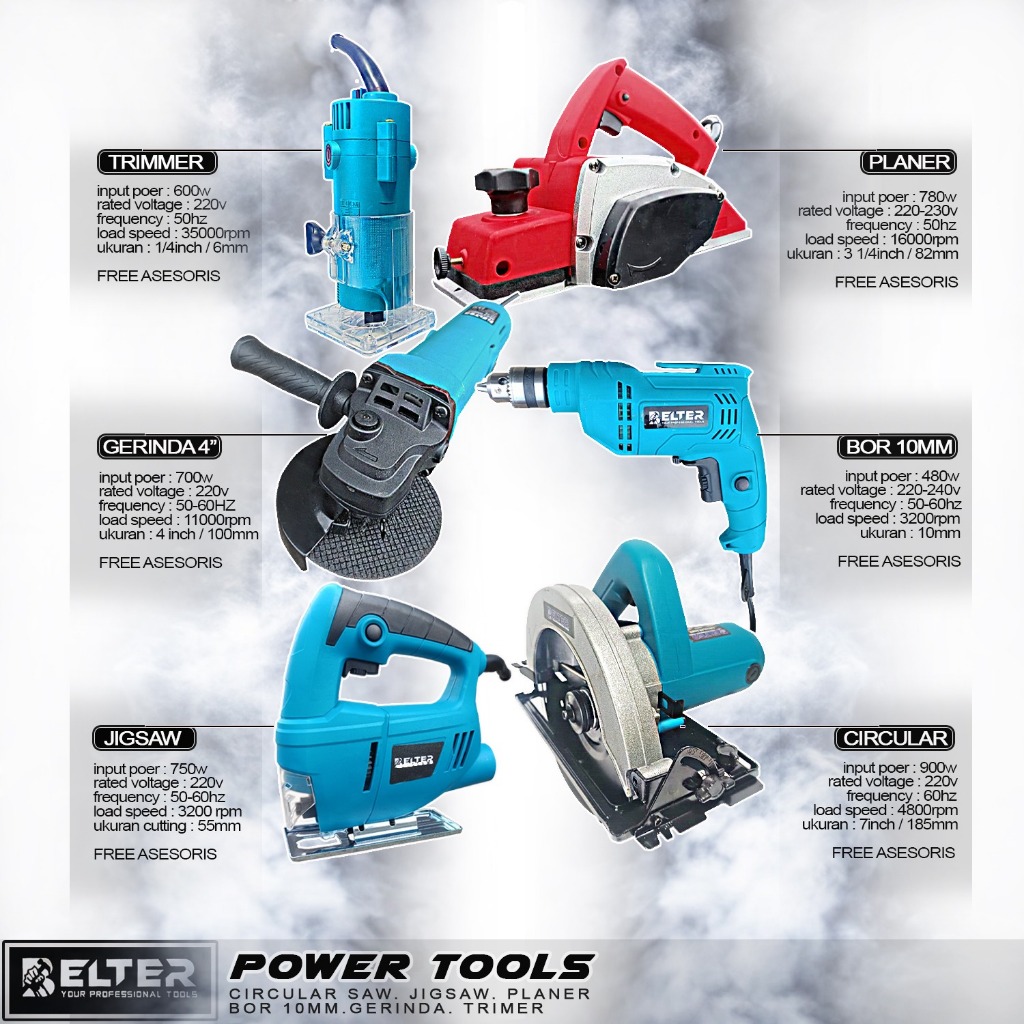 paket tukang 4 -6 item - monake lengkap Mesin Profil KAYU + Mesin Serut kayu + Mesin Circular Saw + Mesin BOR 10MM + mesin jigsaw + mesin gerinda 4 inch