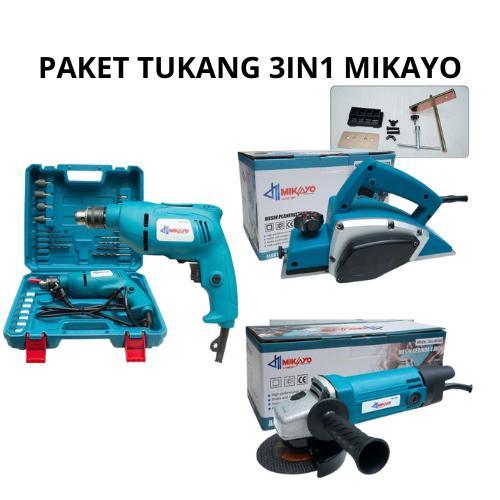 Paket Tukang Kayu 3in1 Mesin Bor 10mm Mesin Bor beton set koper Gerinda tangan dan Serut Kayu