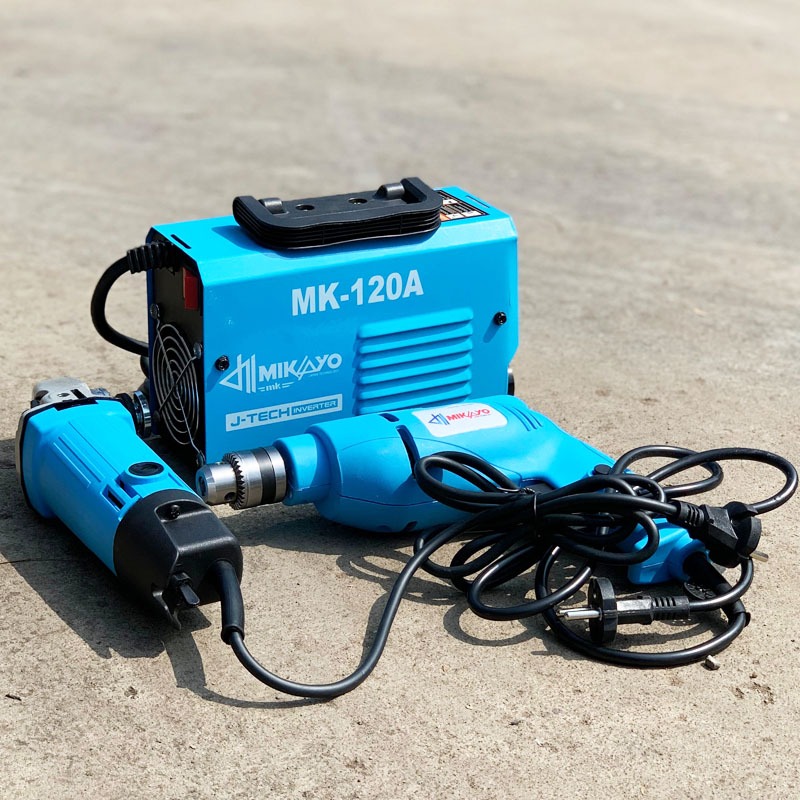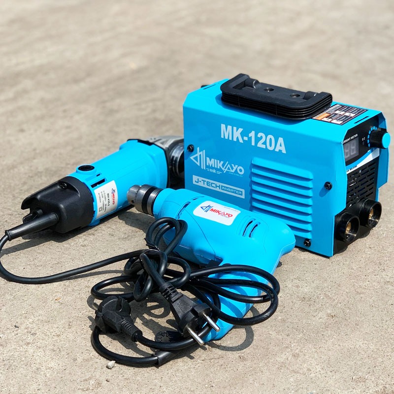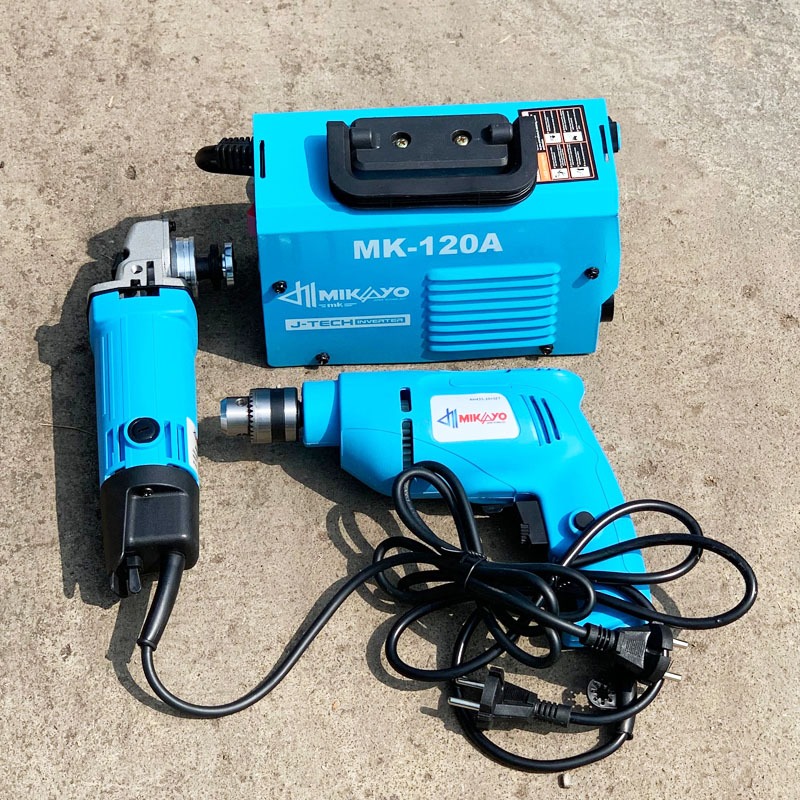 (PAKET 3 ITEM)PAKET TUKANG LAS || MESIN LAS MIKAYO 120A -GERINDA TANGAN MIKAYO 4INCH DAN BOR 10MM BOLAK BALIK MIKAYO BY MAKITA