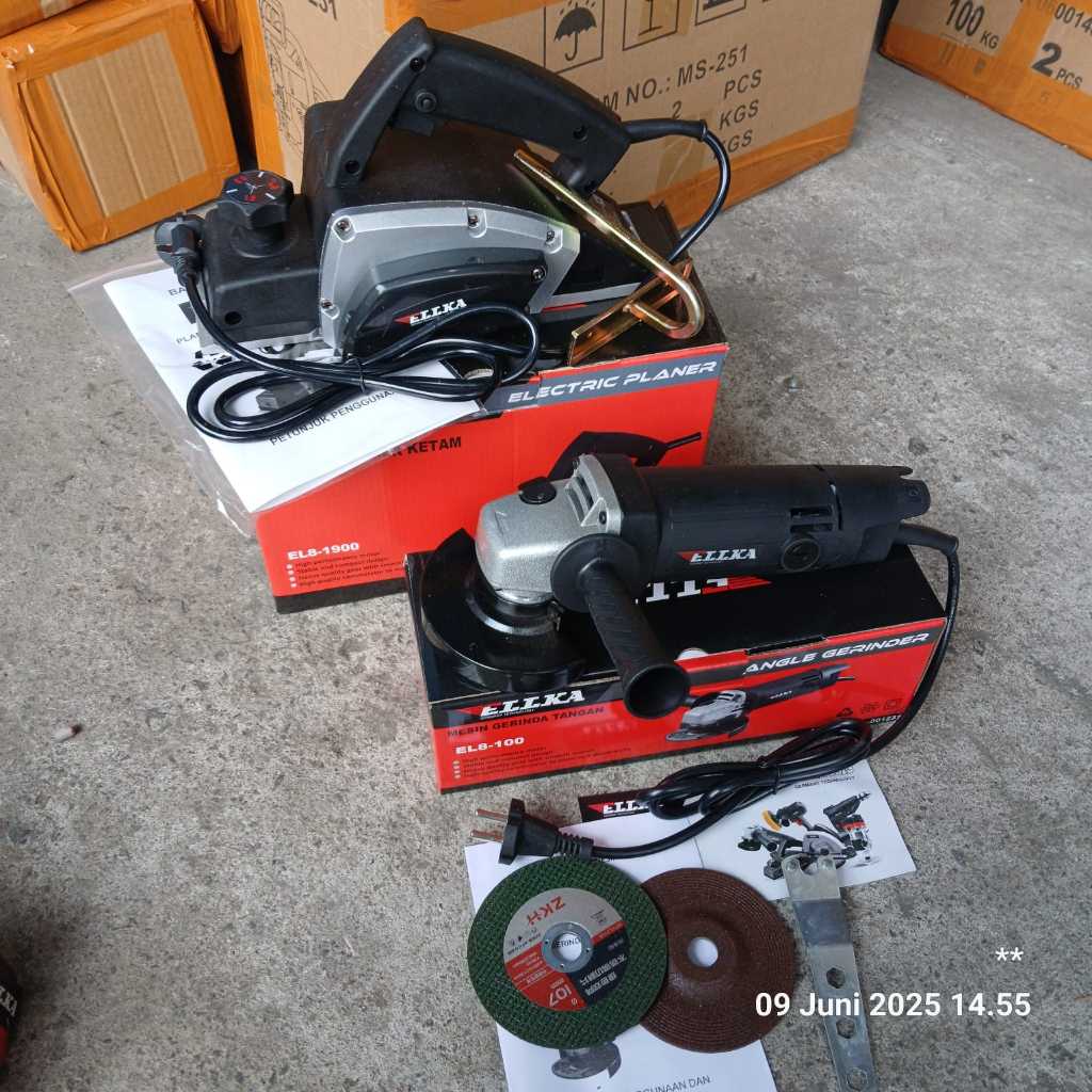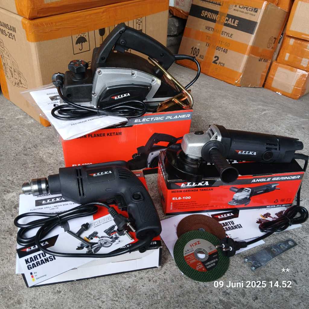 3 Item Paket Mesin Tukang Kayu Lengkap ELLKA Mesin Gerinda 500W+Mesin Bor Listrik 700W+Electric Planner Mesin Serut Kayu Planer 450W