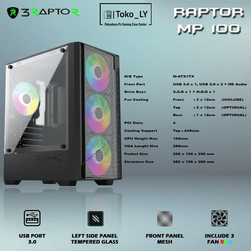 Casing Gaming Raptor MP 100 - Free 3 Fan RGB + USB 3.0