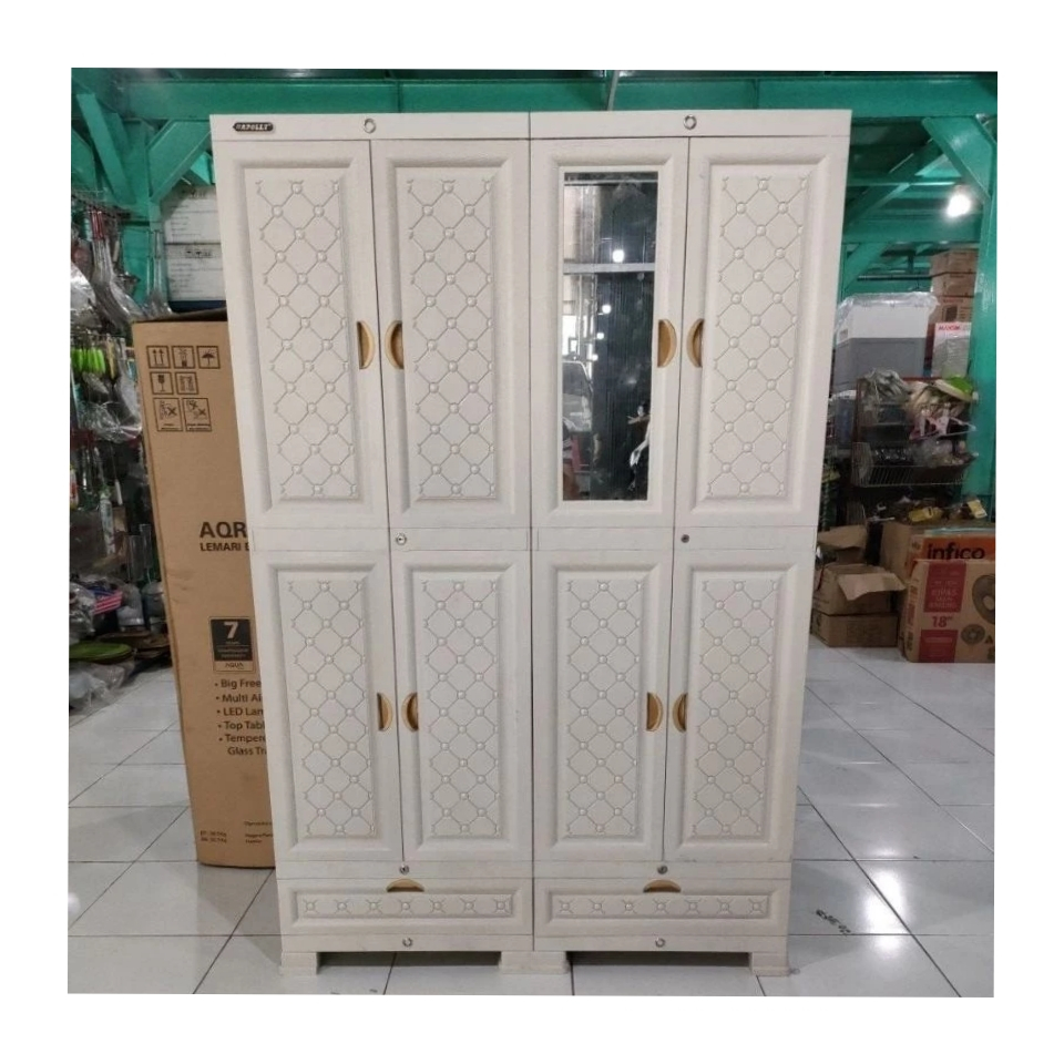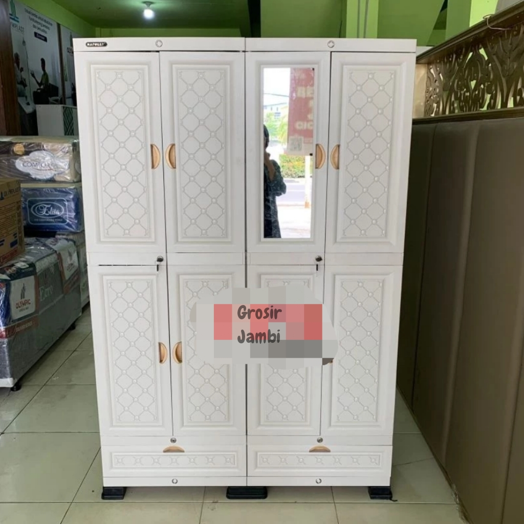 Lemari pakaian plastik napolly 4 pintu MIDI-CAB 4408 DC SUPER JUMBO besar gantung pakai kaca cermin lemari putih aestetic lemari viral lemari pakaian jumbo gantungan