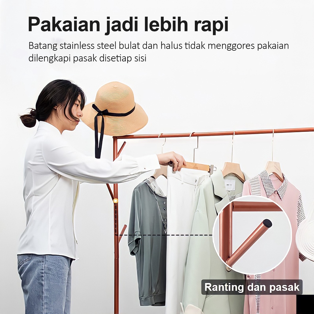 Stand Hanger Gawangan Besi Kuat Gantungan Baju Multifungsi Jemuran Pakaian Portable Serbaguna