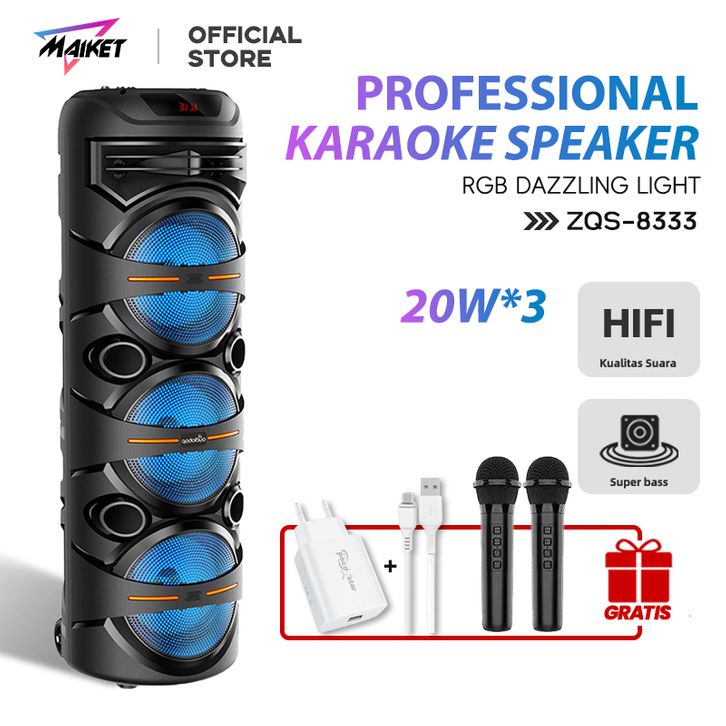 Murah MAIKET Speaker Bluetooth Karaoke 8 Inch 3 Portabel 2 Mic bass besar Wireless subwoofer ZQS8333 Elegan