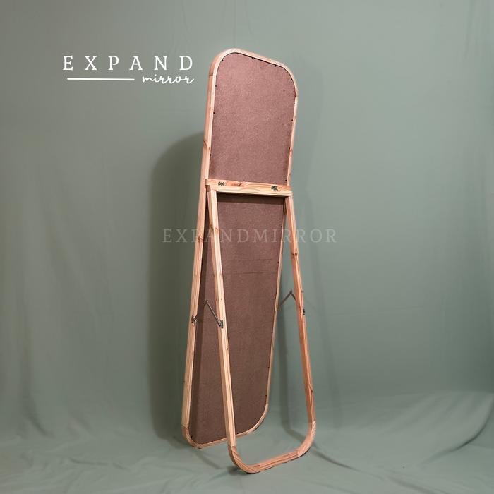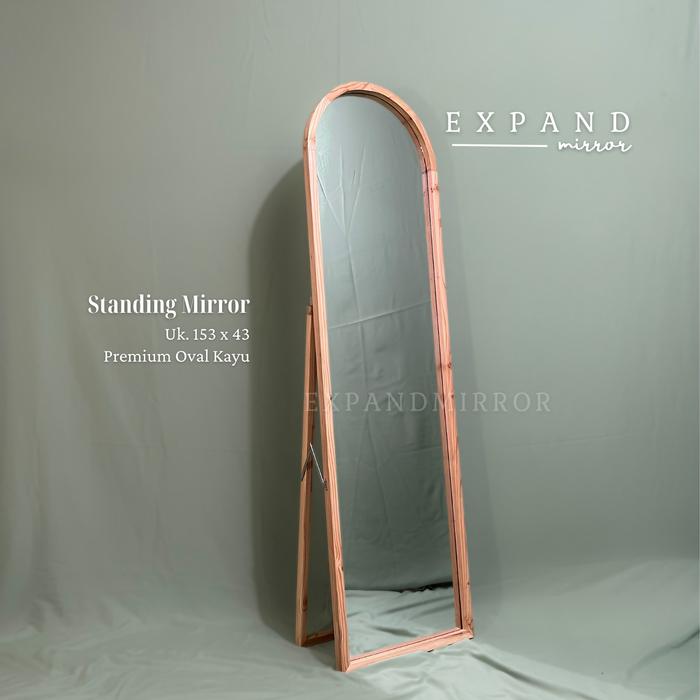 standing mirror kayu 153x43 kaca cermin full body - red pine natural oval