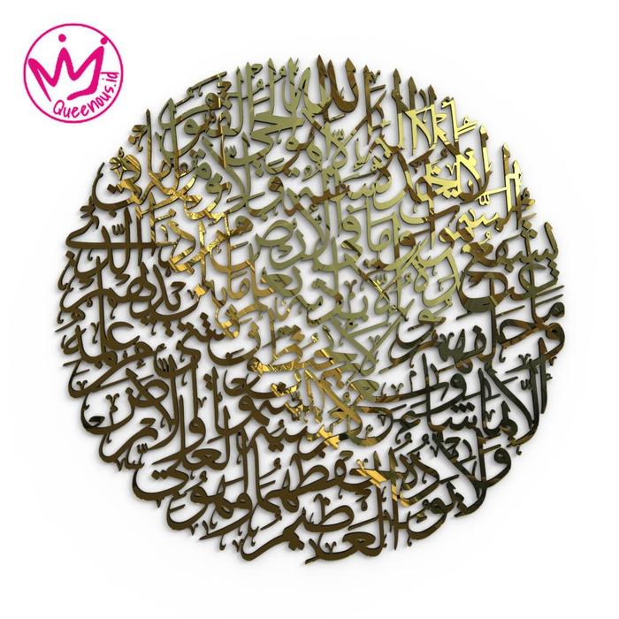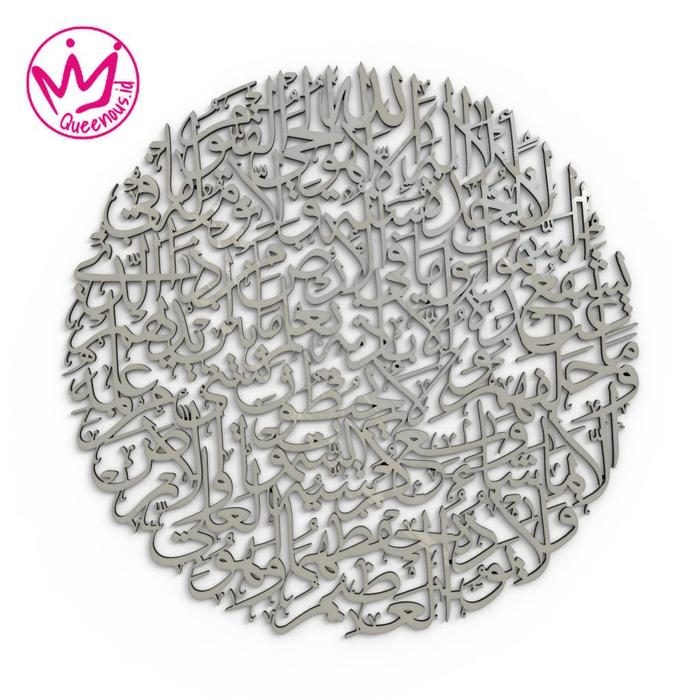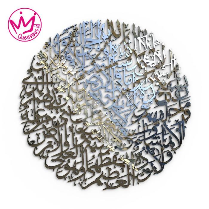 SUPER BESAR MEWAH Kaligrafi Akrilik Mirror Ayat Kursi Cermin Bulat/ HIASAN DINDING ISLAMI - PUTIH GLOSSY 70x70cm