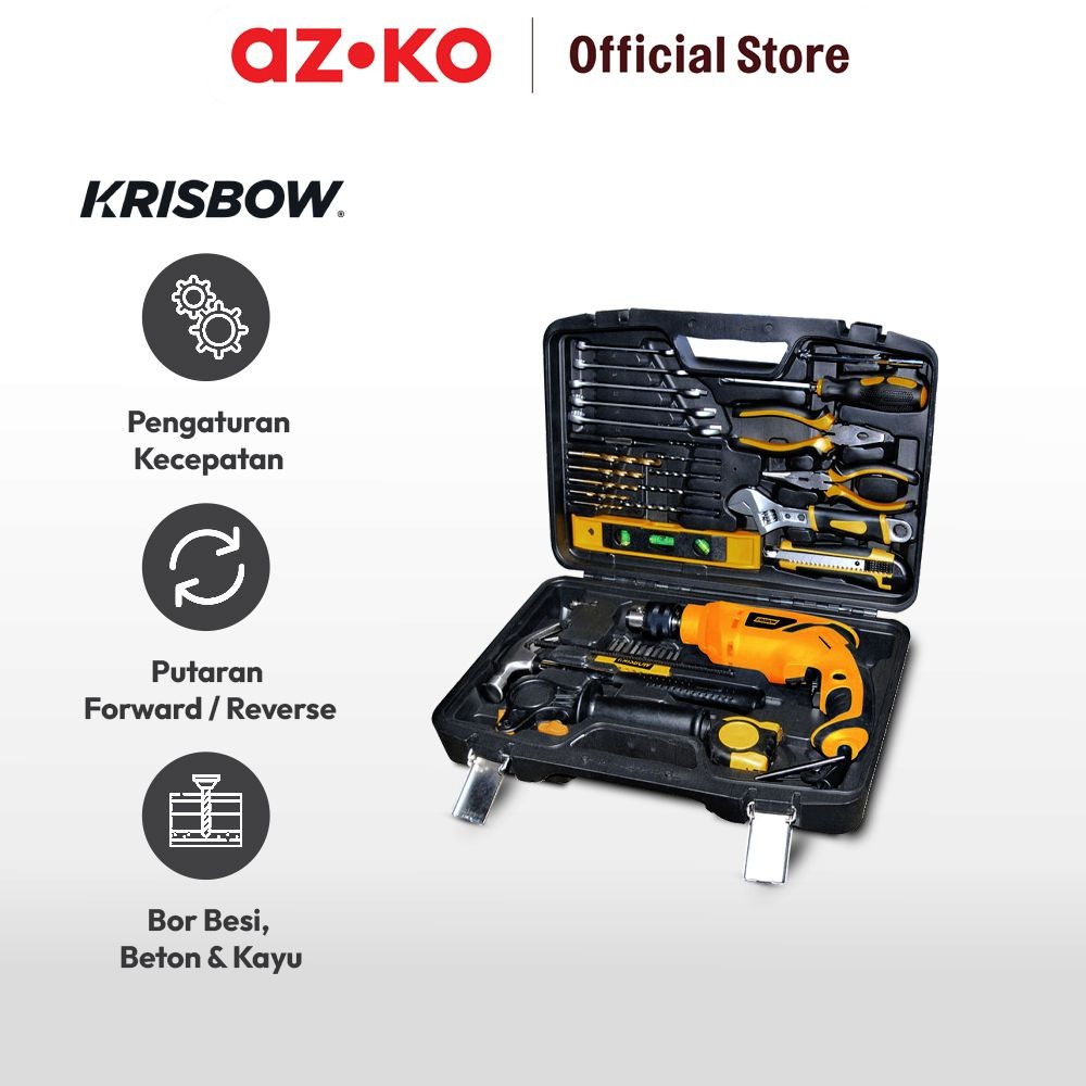 AZKO Krisbow Set Bor Listrik Impact 600 watt 13 Mm Irids132 Impact Drill Electric Alat Pembuat Lubang Elektrik Perlengkapan Tukang Mesin Bor Tangan