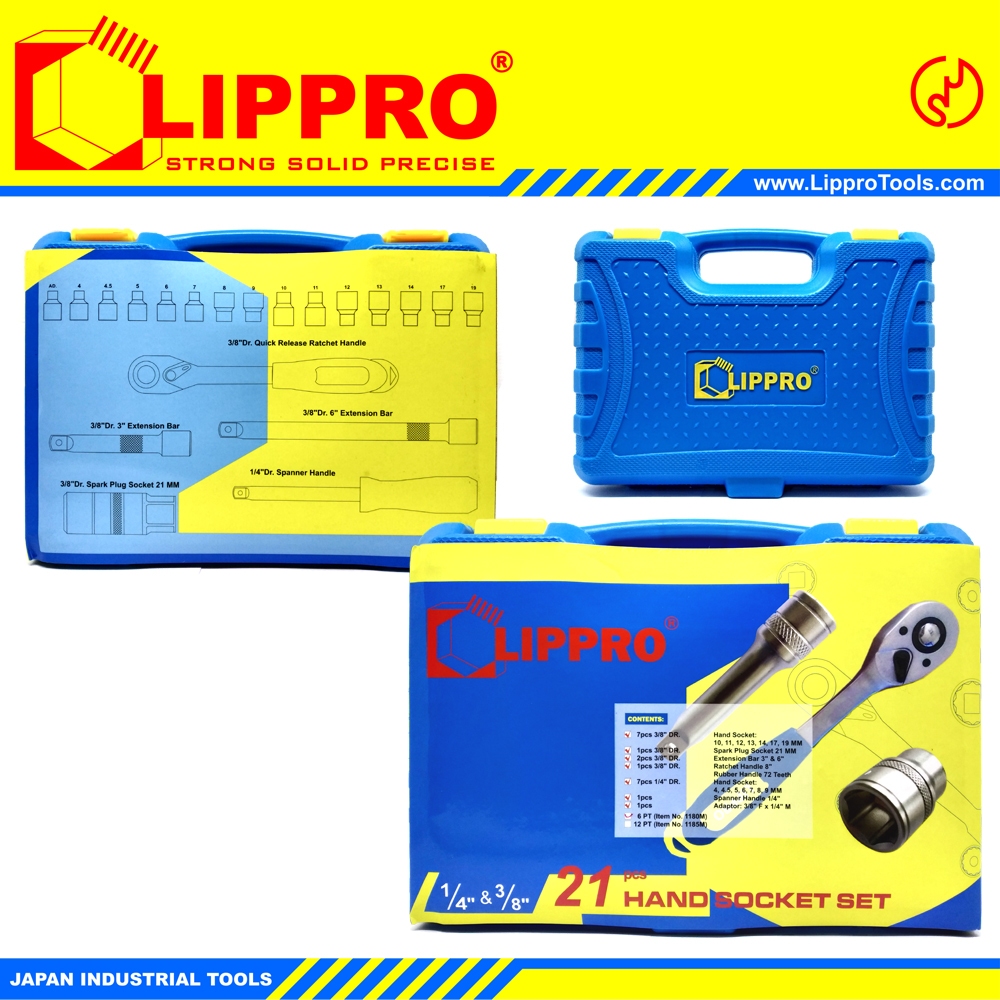 LIPPRO 1180M Kunci Sok Set 6 PT Box Plastik 1/4" - 3/8" Socket Set 21 Pcs
