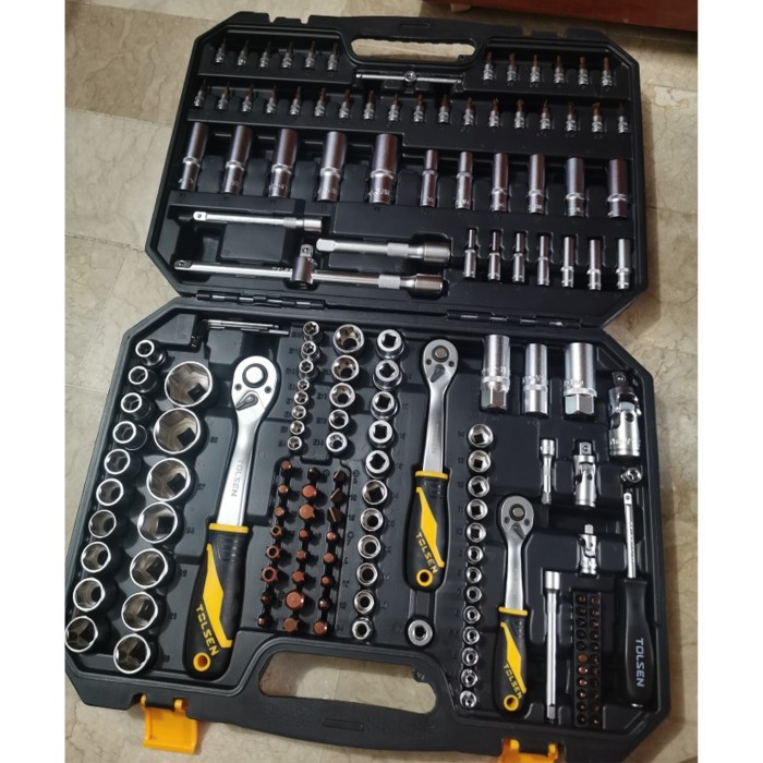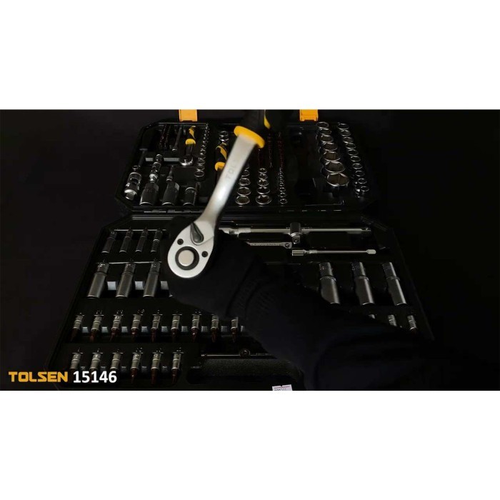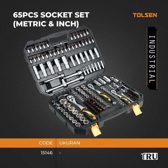 TOLSEN Kunci Shock Set Mata Sok 1/4" + 3/8" + 1/2" Metric & Inch Tool Kit 65Pcs Motor Mobil - 15146
