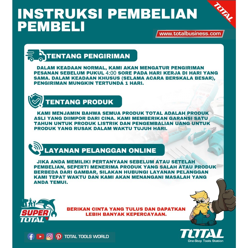 TOTAL Tang Kombinasi 8" / Combination Pliers THT110806P | Bahan Anti Karat | Pegangan Dua Warna