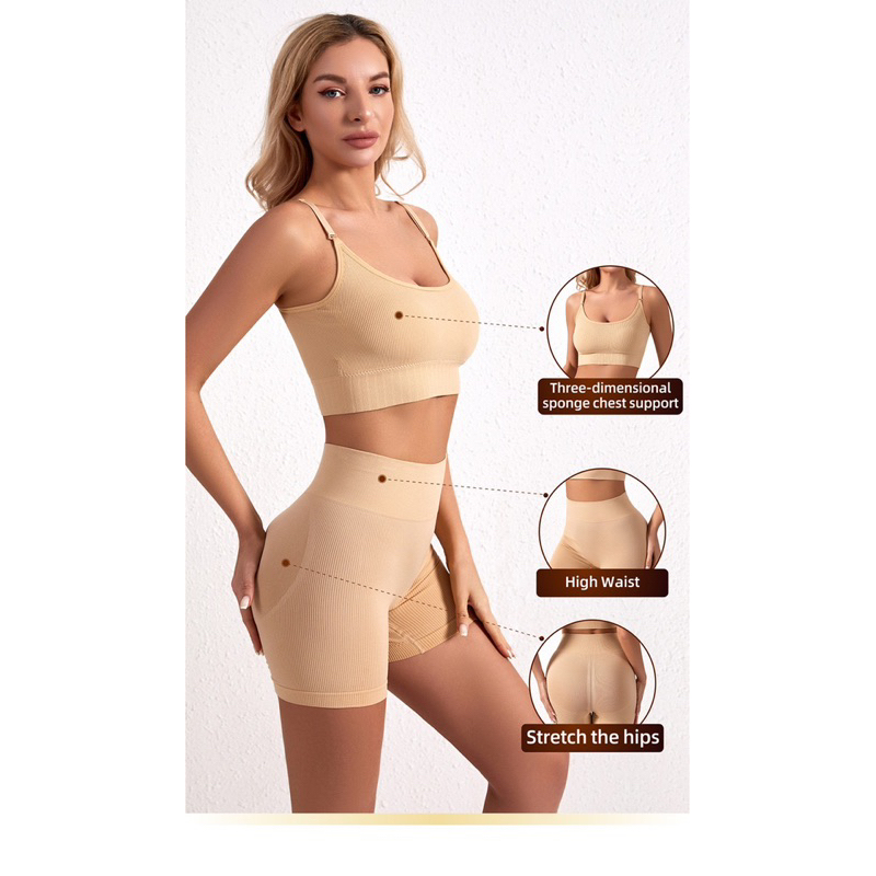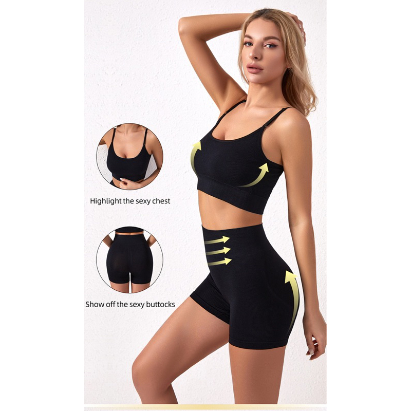 Kylie Sport Set Sport Bra + Short Booty Crunch / Setelan Sport Bra + Celana Legging Pendek Yoga Zumba Gym Fitness Wanita