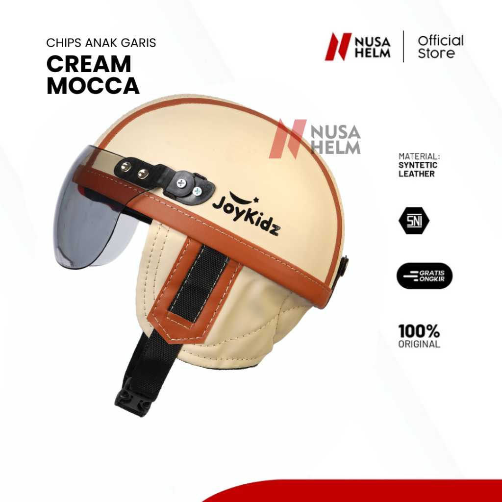 Helm Anak Polos Retro 1 2 3 4 5 Tahun Chips Garis Cream Coklat