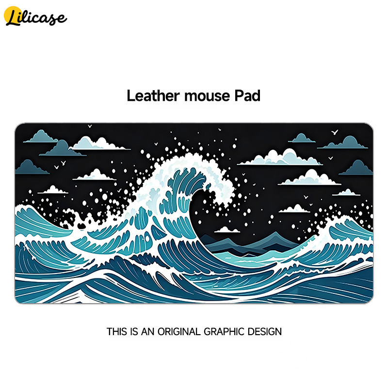 Mousepad Gaming Deskmat Keyboard Pad Anti Slip Besar Seascape Black Blue Sea Wave Fashion Japanese Style Lilipad