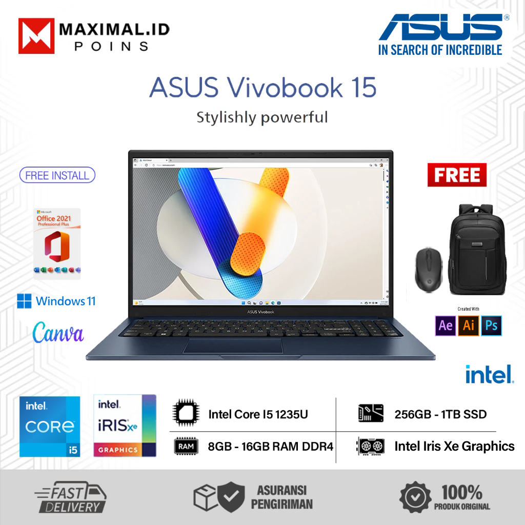 ASUS Vivobook 15 F1504ZA Intel Core i5 1235U 16GB 1TB SSD FHD Windows 11 Laptop Murah